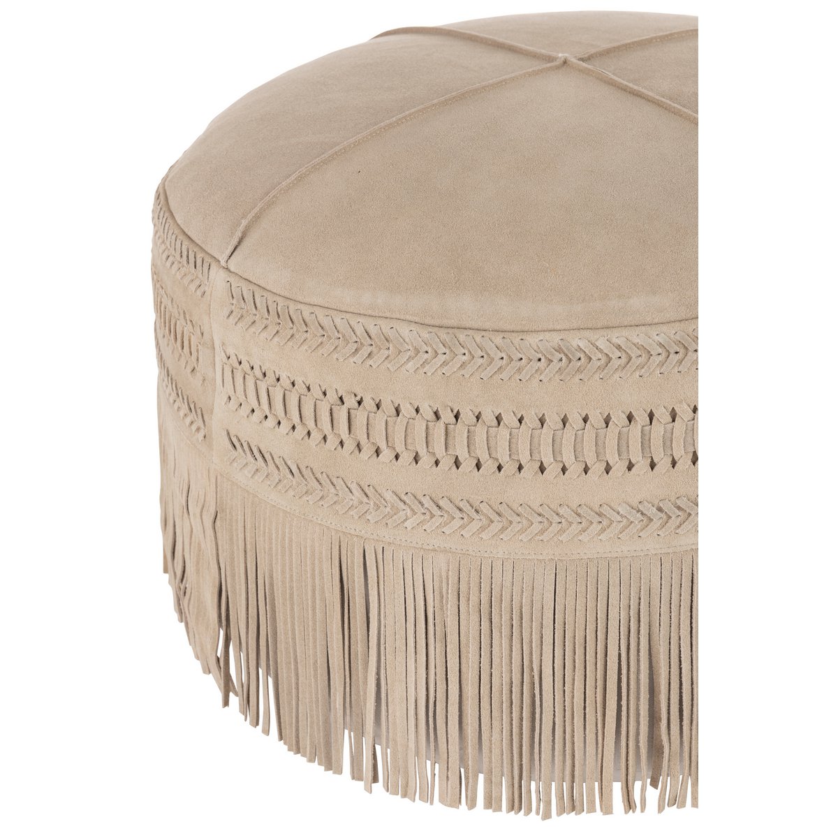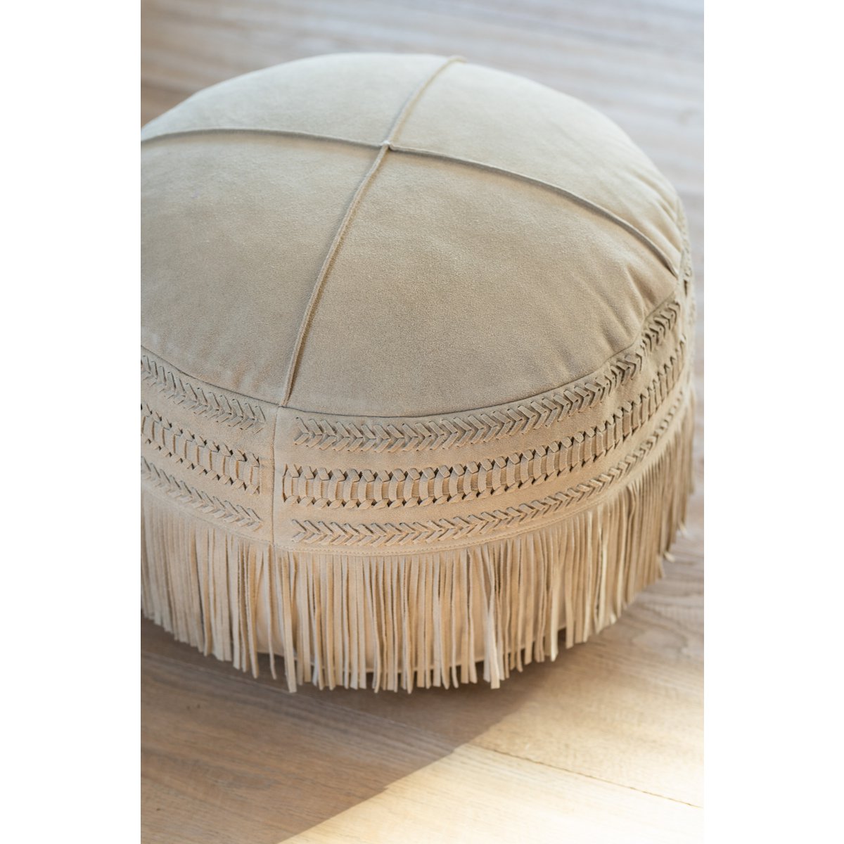 J-Line poef Franjes Rond - leer - lichtgrijs